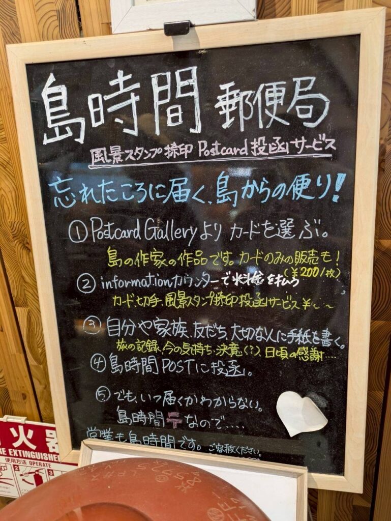 それは、島時間郵便局(風景スタンプ捺印ポストカード投函ービス)で島から便りを出すことです。